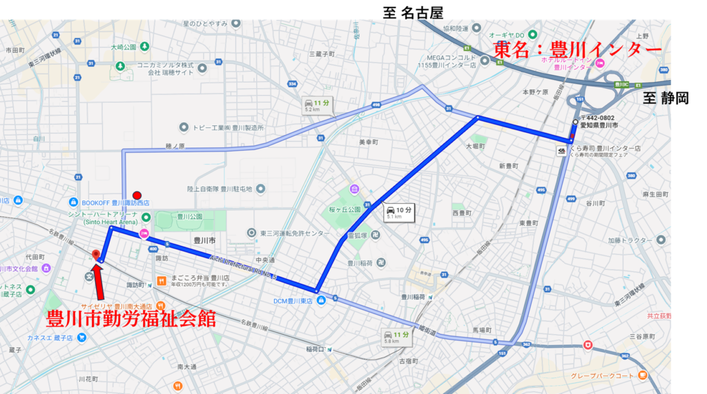 ②豊川IC南(交差点)を右折して県道31号に入る (豊川市街 の表示)